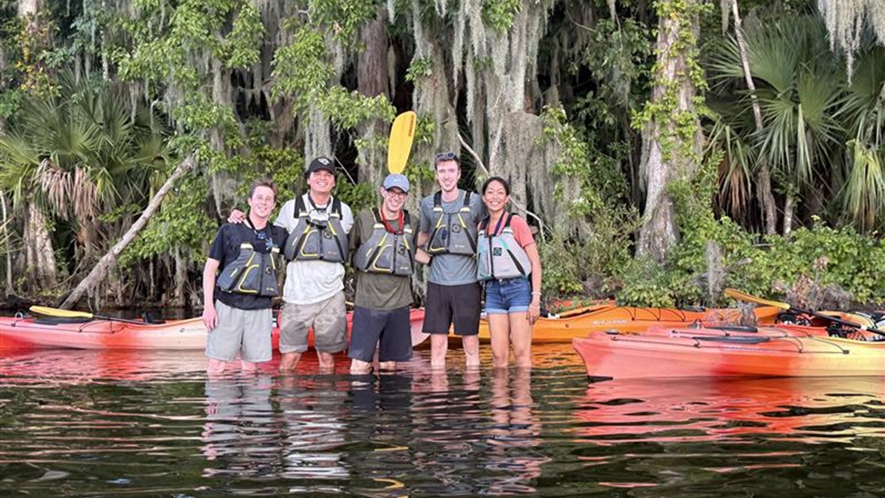 Team members from Orlando enjoyed a sunset kayaking trip in Palatka, taking in the peaceful views along the water as the sun went down.